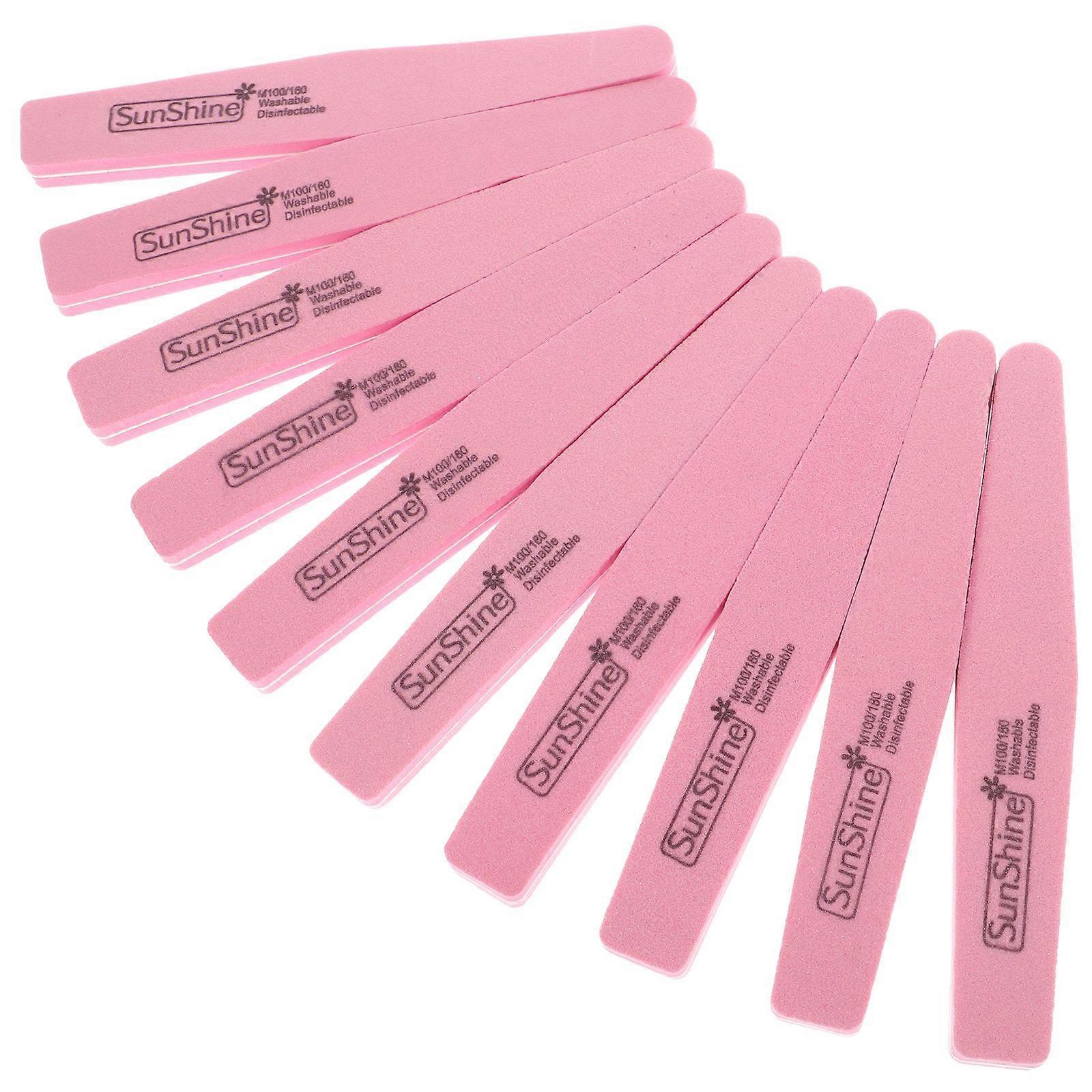 10pcs Nail Files Sponge Double Sided Polishing Board Diamond Waterproof Nail Buffers Manicure Tools (Pink)