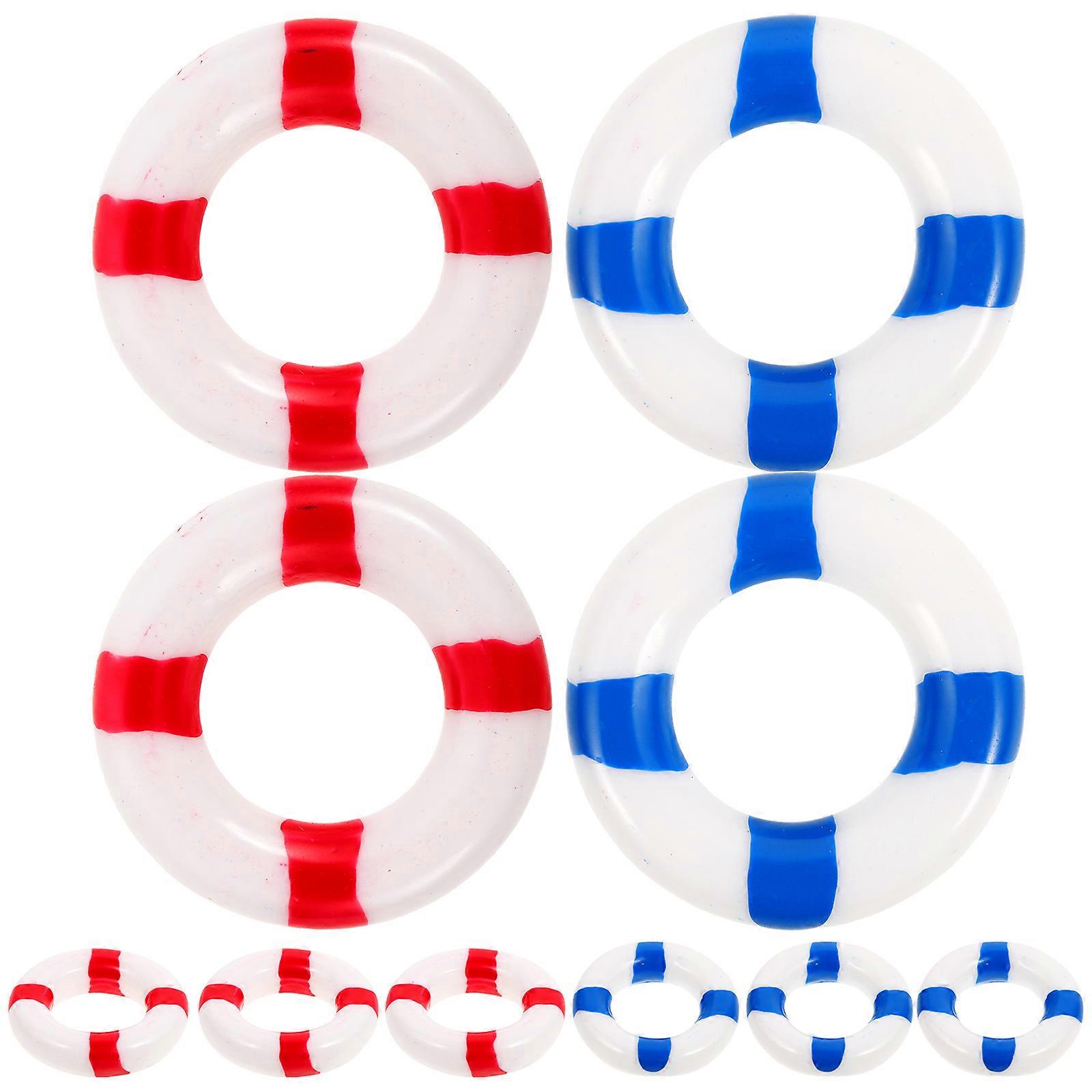 10pcs Wood Decor Marine Theme Decorative Ornaments Swim Ring Door Wall Window Decoration for Restaurant Cafe Shop Bar (Red+Blue, 5pcs for Each Color)