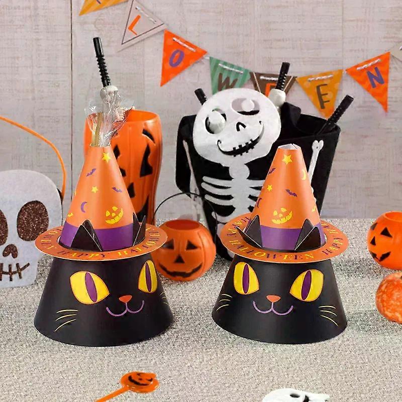 10Pcs Halloween Candy Box Paper Cat Pattern Pumpkin Bat Gift Box Trick or Treat for Kid Halloween Party Home Decor Supplies