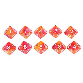 10pcs 10 Sided D10 Polyhedral Dice Dual Color For Dg Rpg Mtg Orange Red