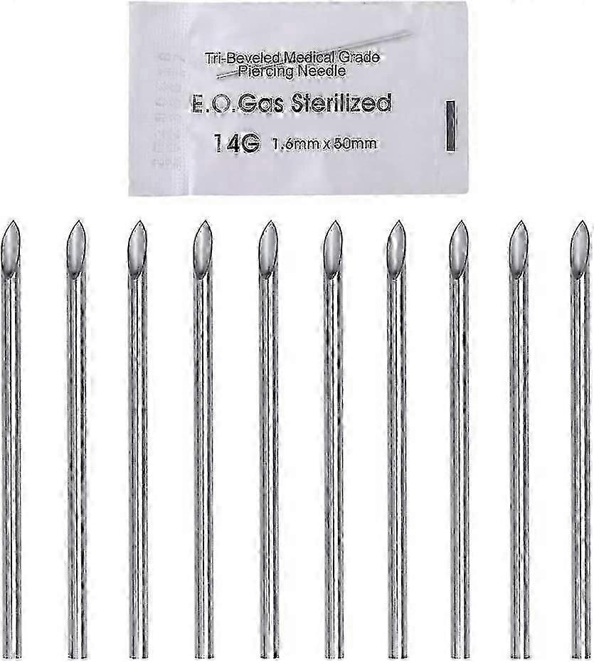 10 Pcs 14g Sterile Disposable Tattoo Piercing Needles