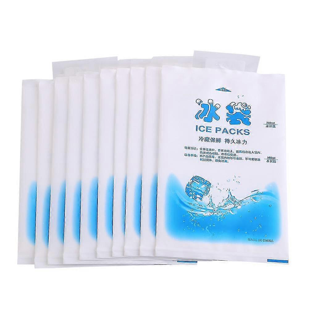 Feature 1These gel packs are filled with high polymeric compound power which is clean, non-toxic, safe and eco-friendly 2The powder inside bag will rapidly absorb water and become gel that has certain elasticity and used as refrigerant 3Water inlet is designed with self-sealing structure so gel will not flow out 4Easy to carry, convenient to use, reusable, not easy to damage, concise, beautiful and quite practical 5Commonly used to keep food cool in portable coolers, or as a cold compress to alleviate the pain of minor injuries; or in insulated shipping containers to keep products cool during transportSpecification