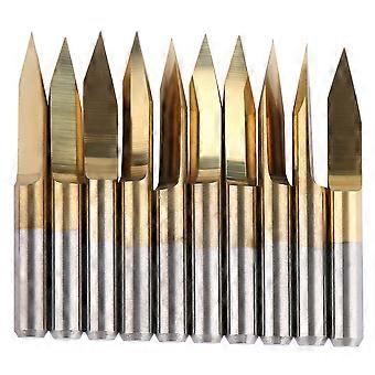 10pcs 3.175mm Titanium Coated Tungsten Steel Engraving CNC Bit Carving Tool (3.175*30*0.1)