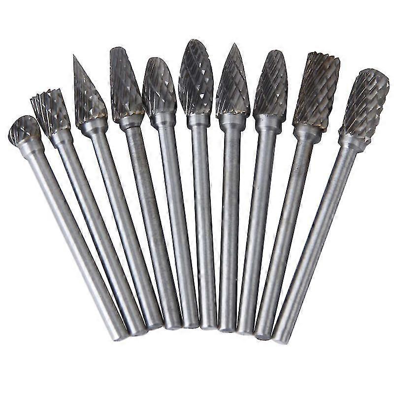 DescriptionThis item is a set of 10pcs assorted carbide burrs are preferred for accurate metal removal when shaping, leveling, or porting cast iron, steel, and other nonmetal materials. These carbide burrs come with approx. 6mm head diameter and 3mm shank.Features- Burr Head Diameter: Approx. 6mm.- Diameter: Approx. 3 mm.- Length: Approx. 38mm.- Material: Tungsten Steel YG8.- Usage life: About grinding 400 times.- Suitable for deburring and polishing metal / nonmetal materials up to HRC70 hardness.- Shape: Cylindrical, ball, conical, pointed tree, inverted cone, round tree, oval, flame, etc.