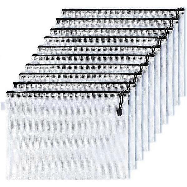 10 Pieces A4 Document Folder with Zipper Pocket File Bags Portfolios for Office Cosmetics Storage