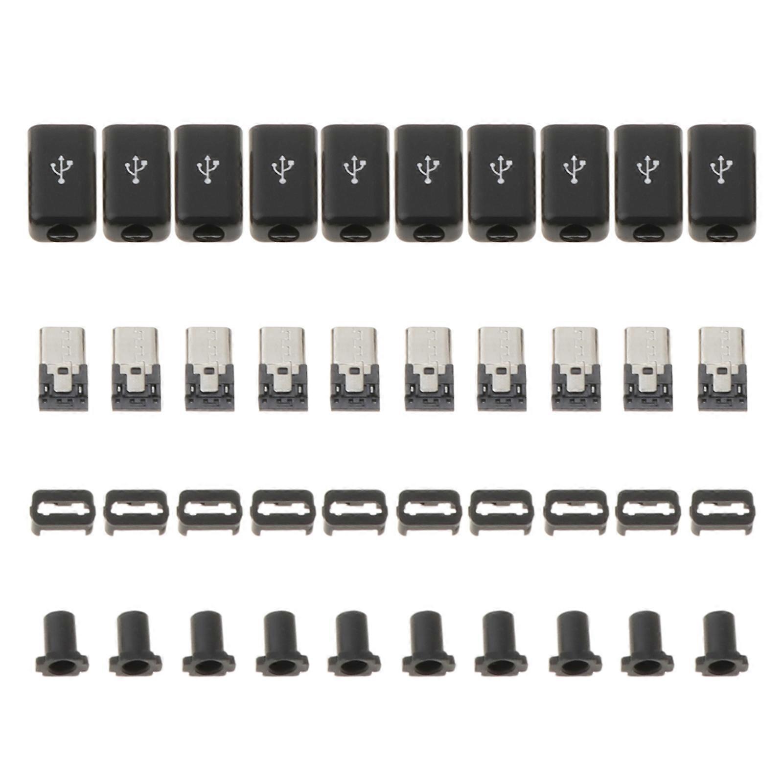 10 Sets Micro USB Welding Type Male 4 Pin Plug Connector for w/Plastic Cover 4 i Black