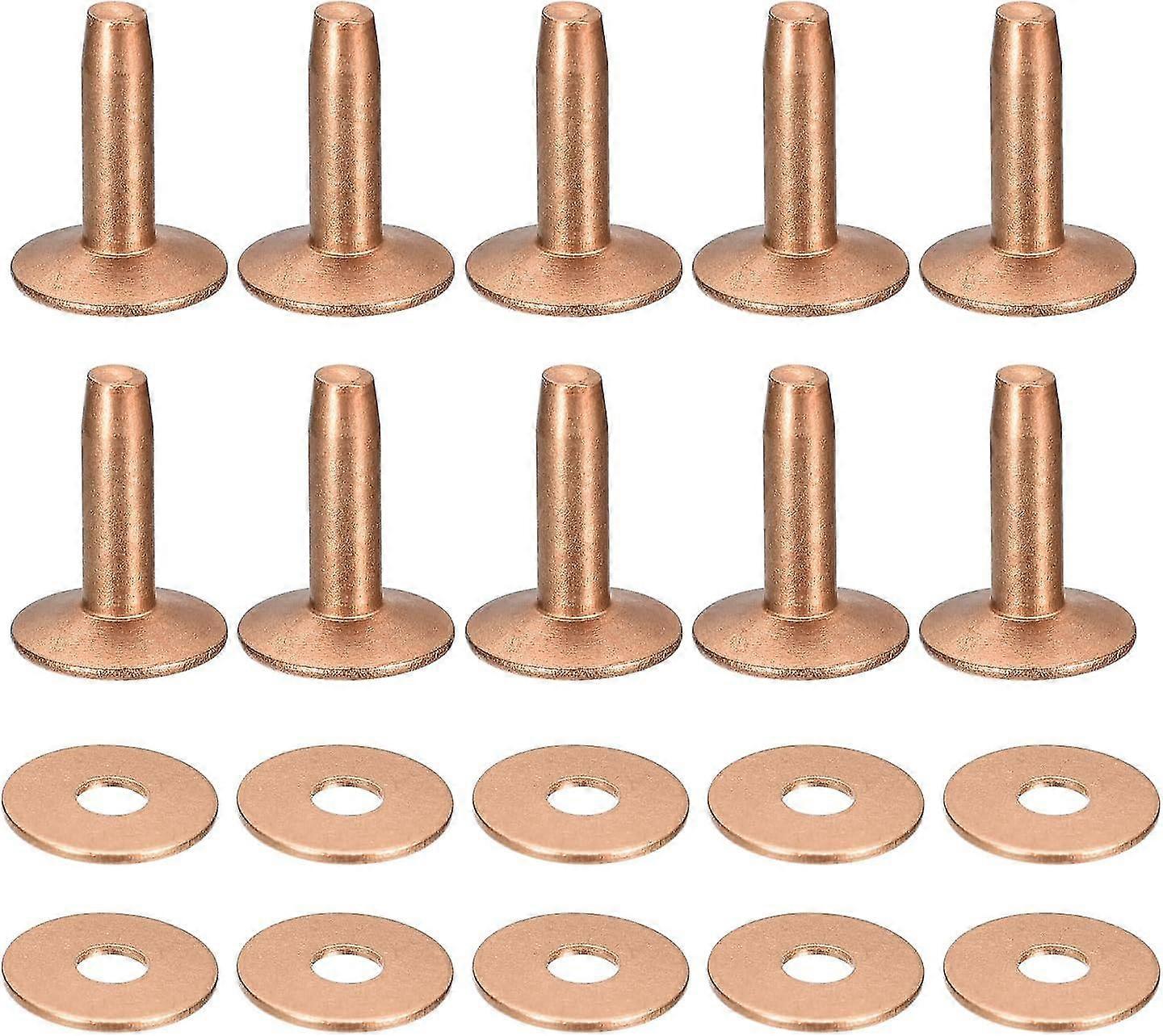 10 Set Copper Rivets And Burrs, 12x4x14mm Solid Leather Copper Rivet Fastener For Leather Diy Craft Supplies, Copper Tone