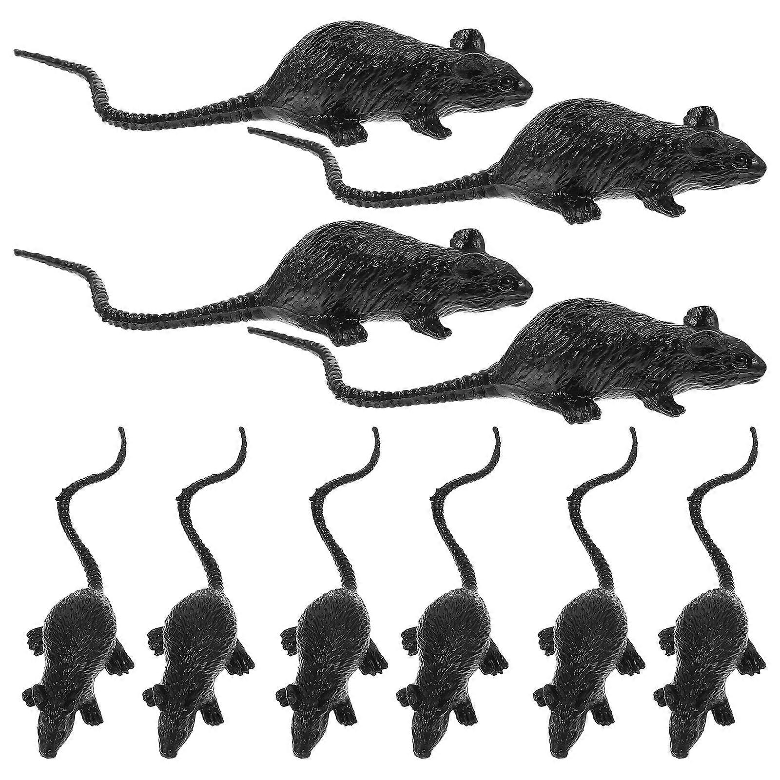 10pcs Halloween Horror Simulation Mouse Tricky Props Rat Scary Decoration Party Supplies for Haunted House Bar(Black)