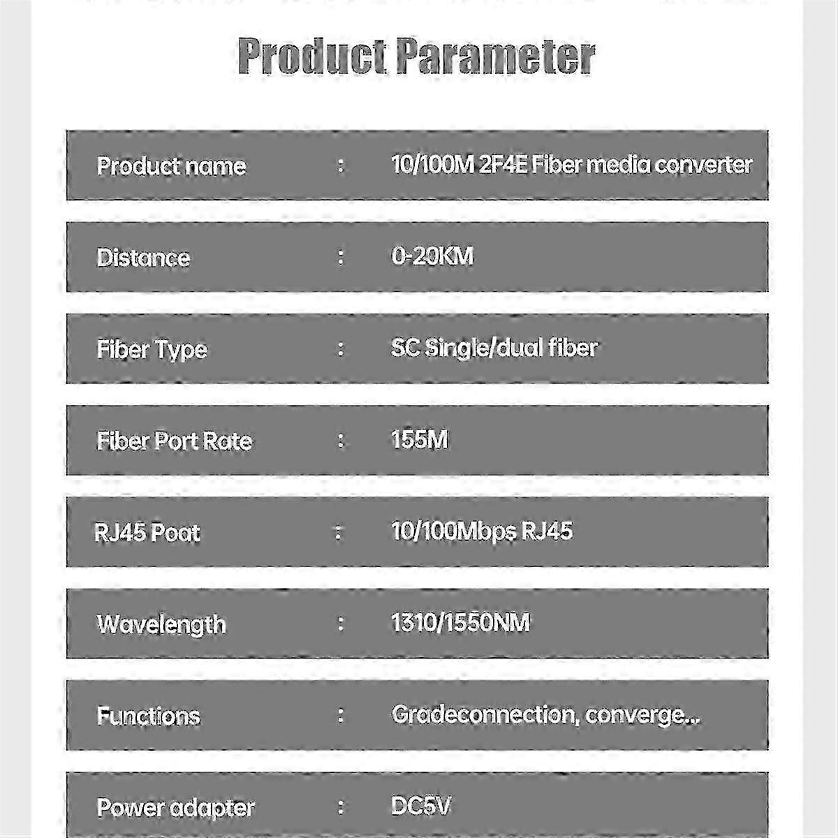 10/100M 2 Fiber Ports 4 RJ45 Port fiber media Converter EU PLUG