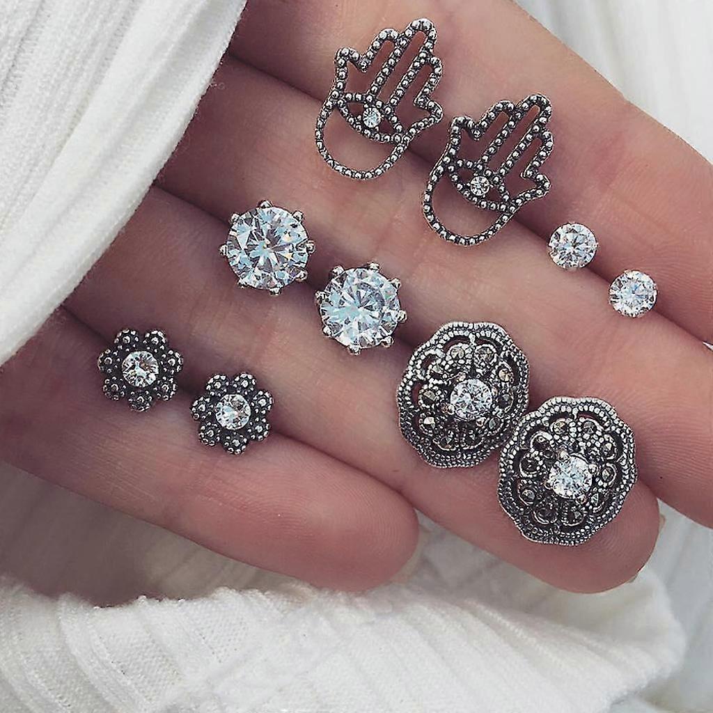 10pcs Retro Boho Carved Flowers Crystal Palms Floral Earrings Jewelry Sets