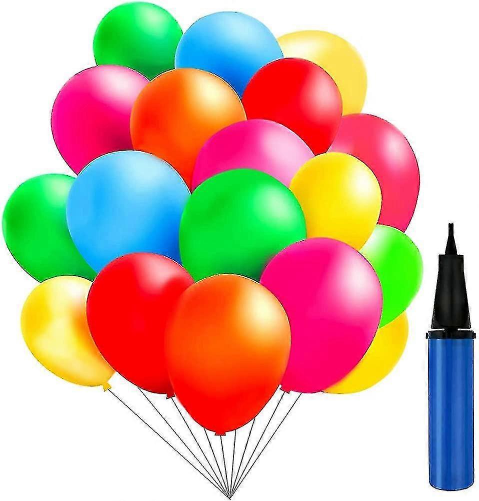 100 Colorful Balloons With Blue Pump, Balloons For Parties, Birthday, Wedding