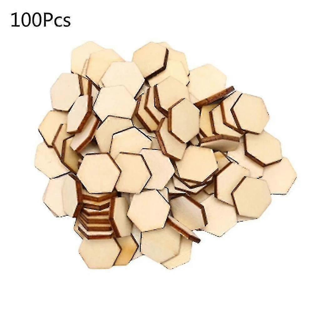 100 Pcs Wood Chips Hexagon Unfinished Wood Cutout Natural Color For Laser- Cut