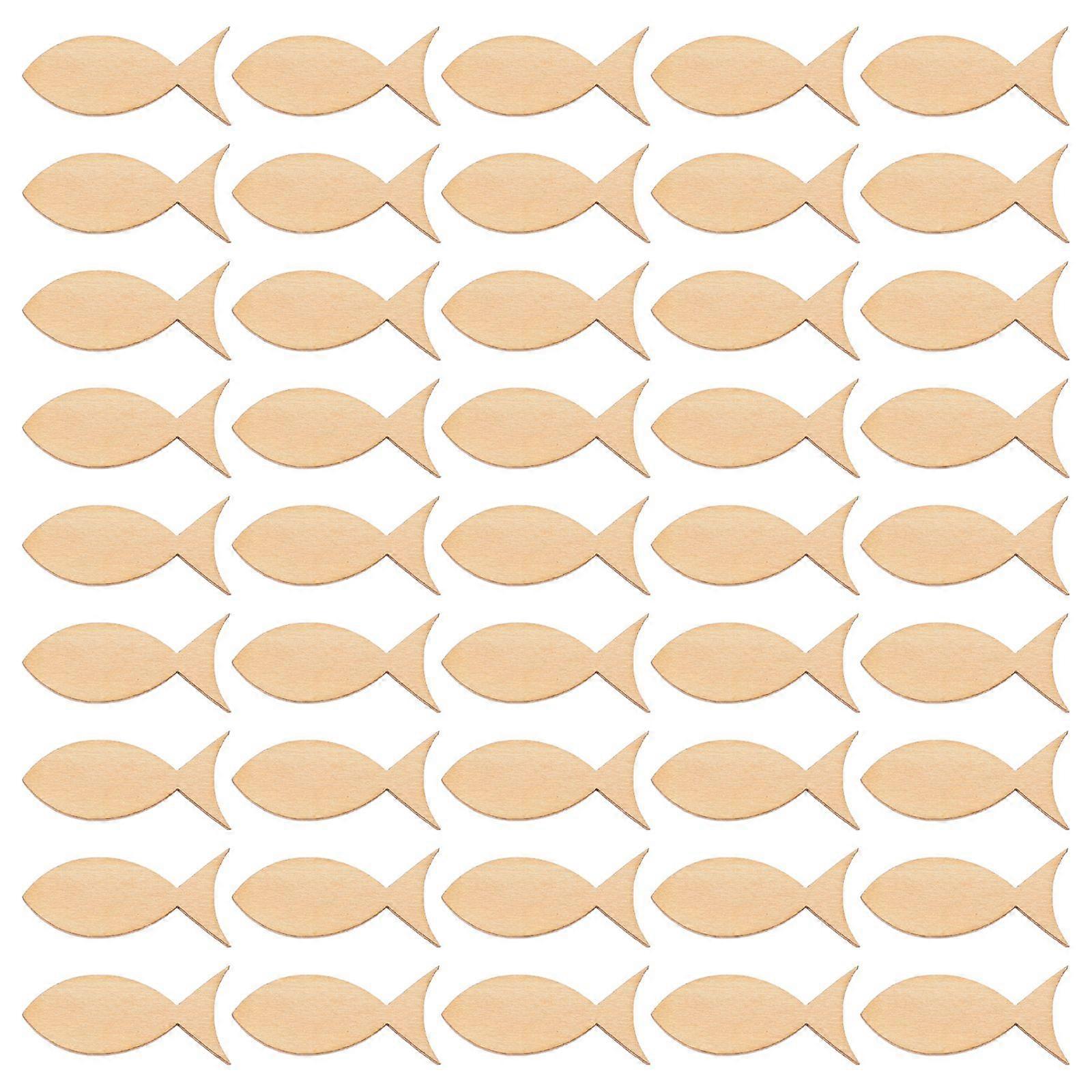 100 Pcs Unfinished Wooden Chips Fish Shape Wood Slices Graffiti Wood Chips