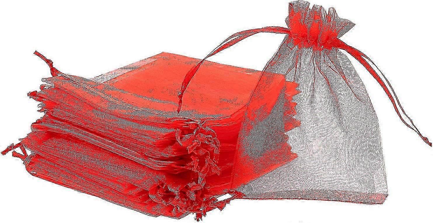100 Pack Red Organza Gift Candy Bags - Drawstring Pouch Wrap for Wedding, Christmas, Valentine's Day Favours