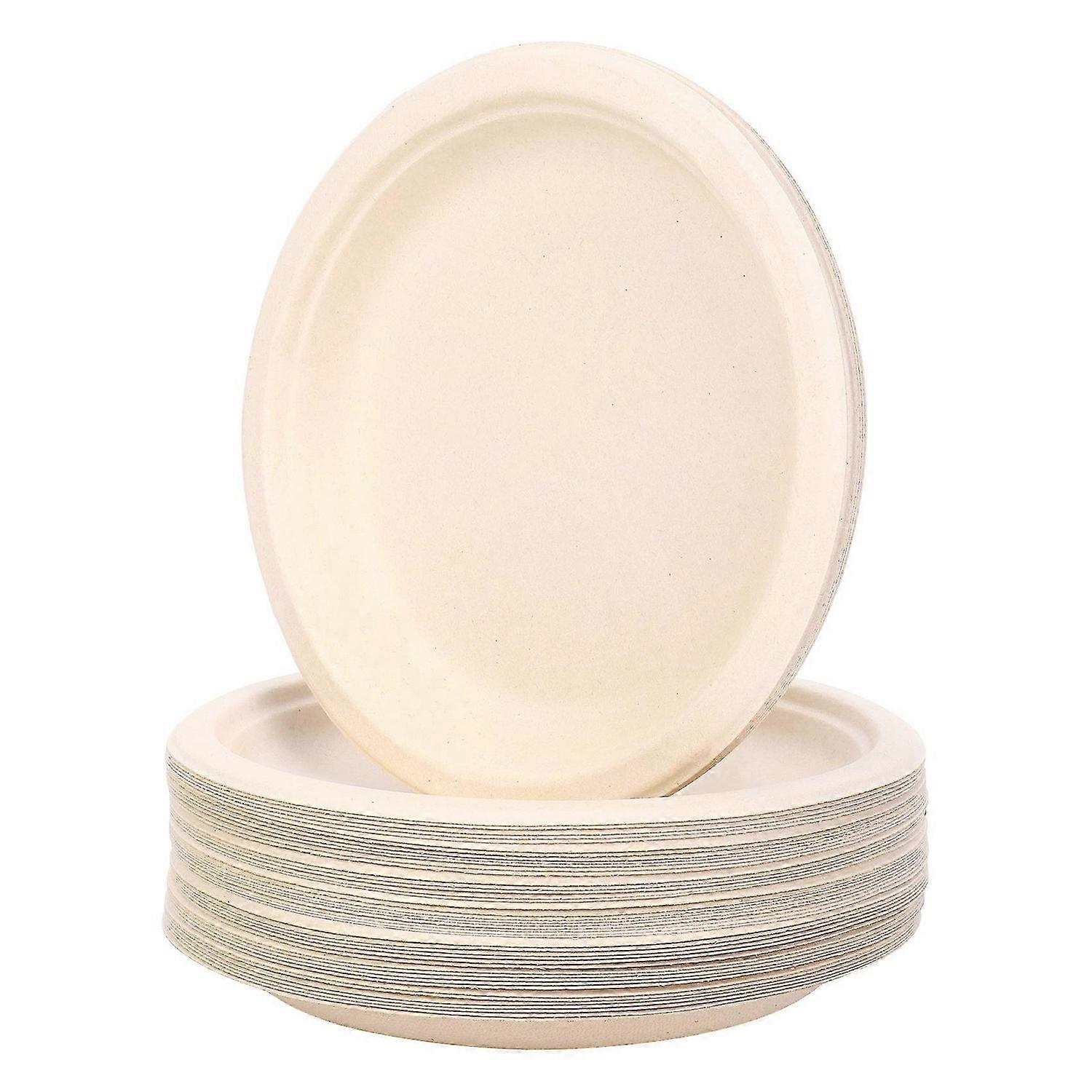 100 Pack 7in Compostable Round Bagasse Paper Plates,Biodegradable Sugarcane Fibre