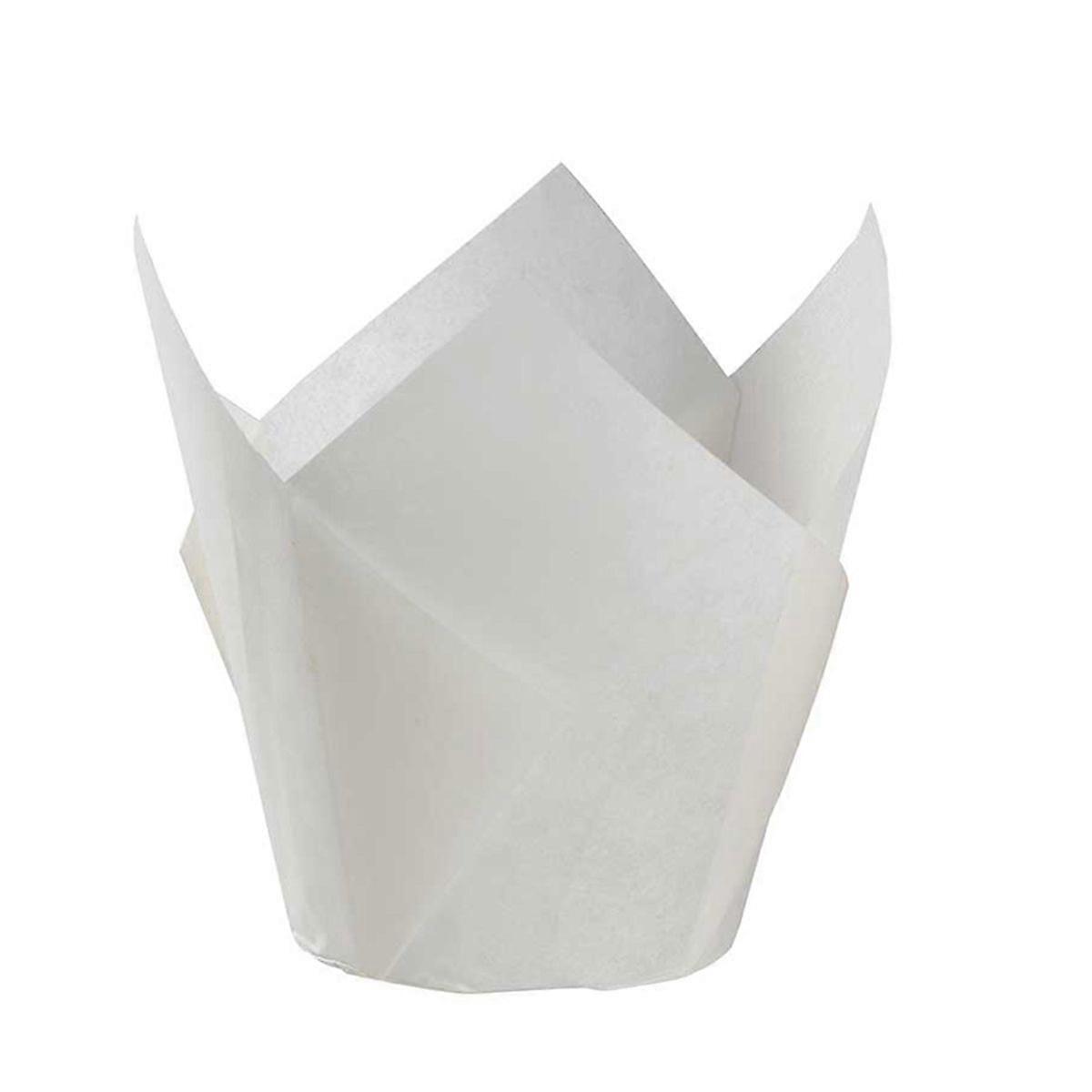 100Pcs Cupcake Wrappers Baking Cups Tulip Shape Liners Muffin Cake Cup Party Favors - White