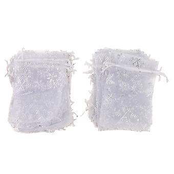 100 Pcs Tulle Snowflake Gift Pouch Candy Bag Christmas Gift Favor 10 X 15cm