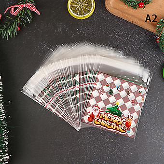 100pcs Christmas Gift Bag Self Adhesive Cookies Candy Wrapping Bag New Year Party Gift Snack Baking Plastic Bag