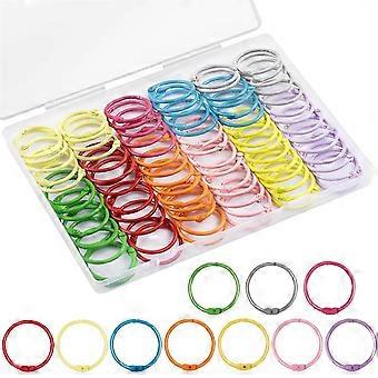 100pcs Binder Rings With 1 Clear Organizer Box - 1 1/5 Inch Colorful Metallic Loose Leaf Paper Rings