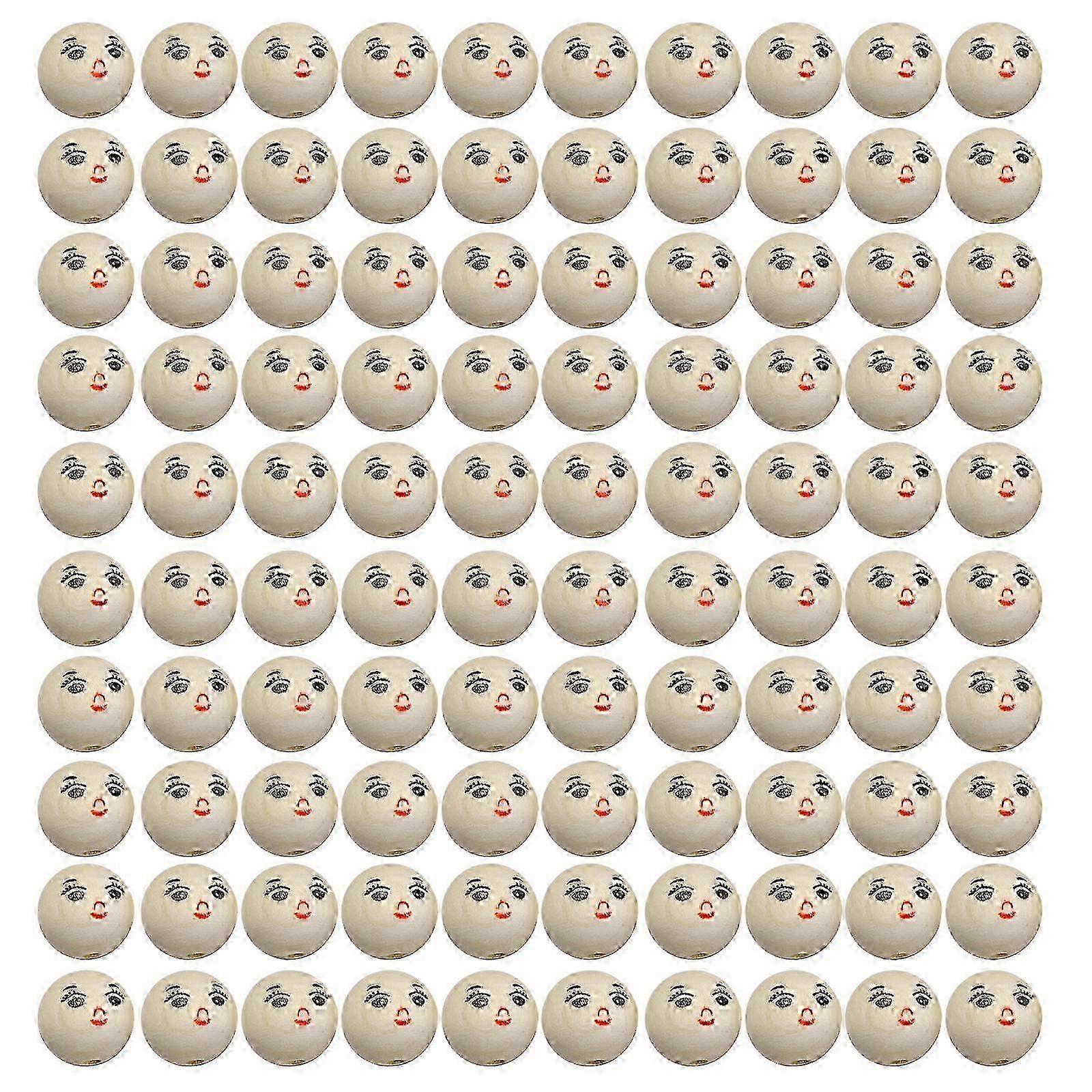 100pcs Wood Balls with Hole 20mm Smiling Face Head Ball Natural Wood Craft Bead for DIY Jewelry Making Macrames Handmade