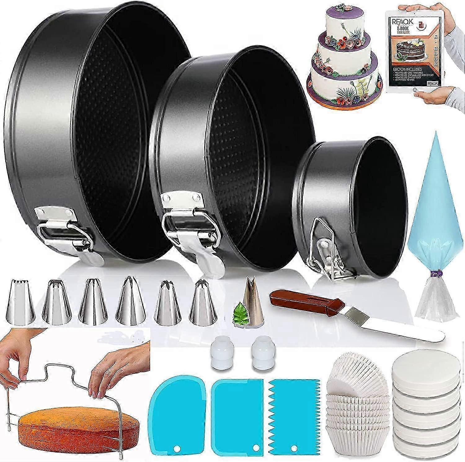 100 pieces cake mold set for cooking - 3 sticky string molds (4, 7, 9 inches), pipe tips, cooking materials