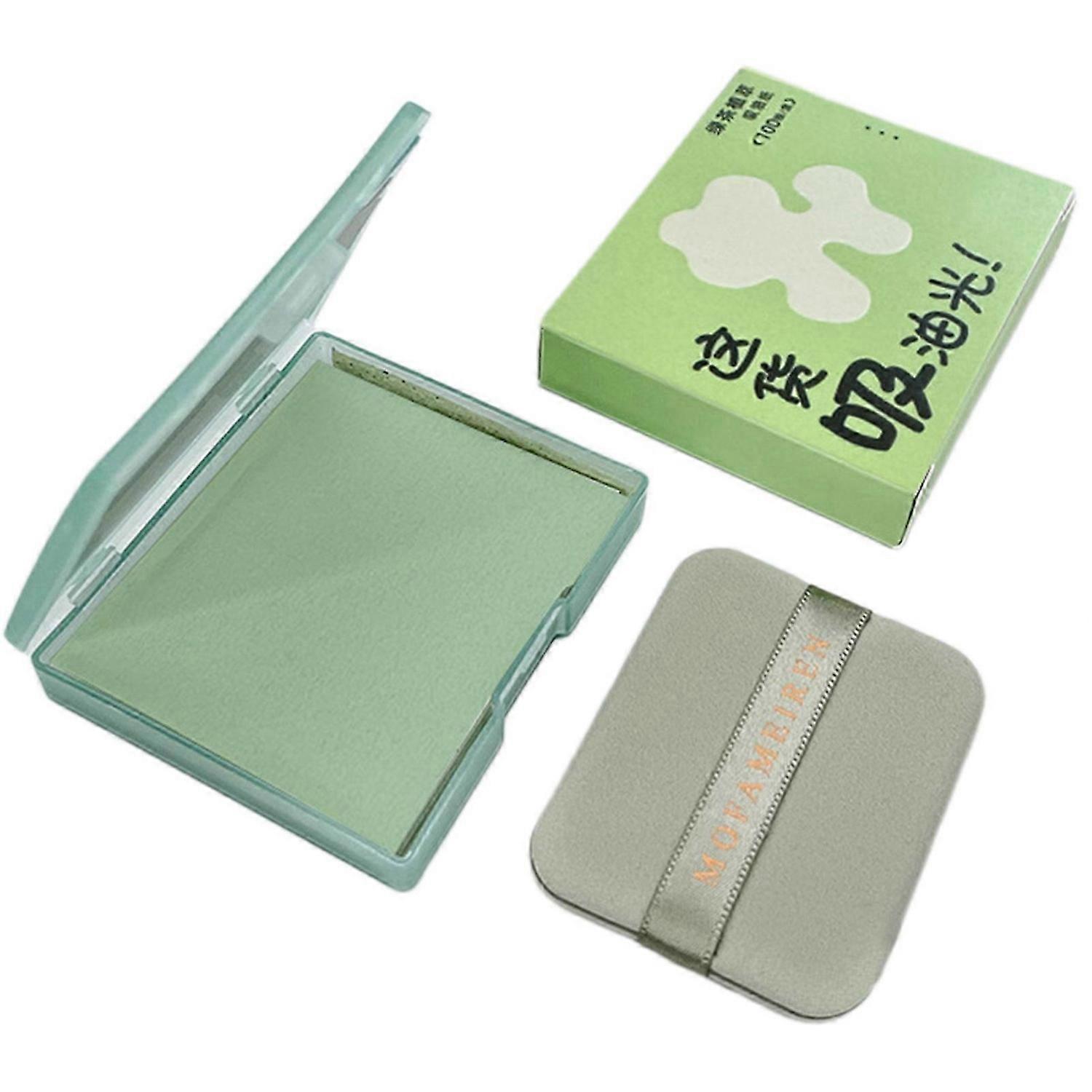100Pcs Makeup Oil Control Blotting Sheets for Face, Oily Skin Blotting Paper, Face Oil Absorbing Papers with Mirror & Puff
