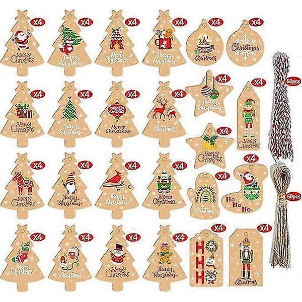100pcs kraft paper Christmas gift tags with string, brown kraft paper Christmas gift tags, stamp and label for Christmas gift wrapping, 10 designs for