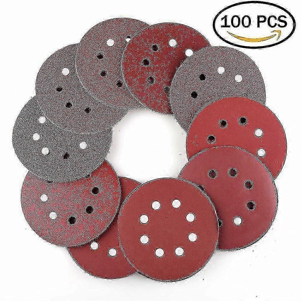 100 Pieces Of 8 Holes 125mm Back Velvet Disc Sandpaper Set