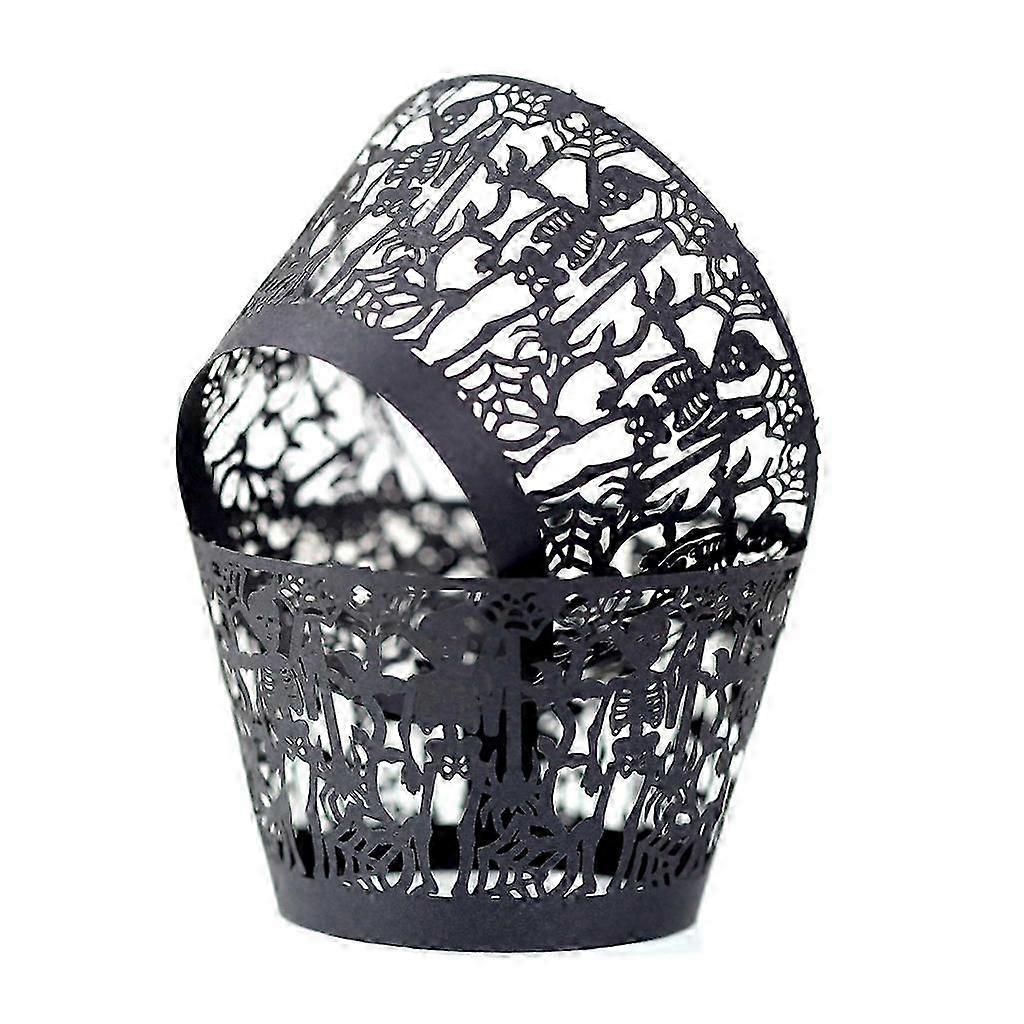 100 Pcs Halloween Cupcake Wrappers Pumpkin Cobweb Skull Halloween Cupcake Cups Artistic Bake Paper Cups Black Lace Hollow Cupcake Liners Cake Decorat