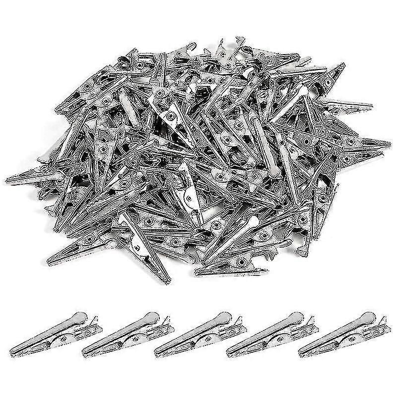 100pcs 1.06in / 27mm Mini Metal Alligator Clips, S Silver T El Plated Line