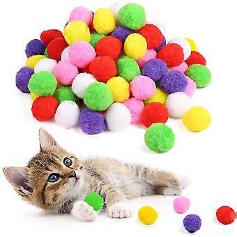 100 Pieces 1.3 Inch Assorted Large Cat Toy Balls, Soft Pom poms Ball for Cats to Play