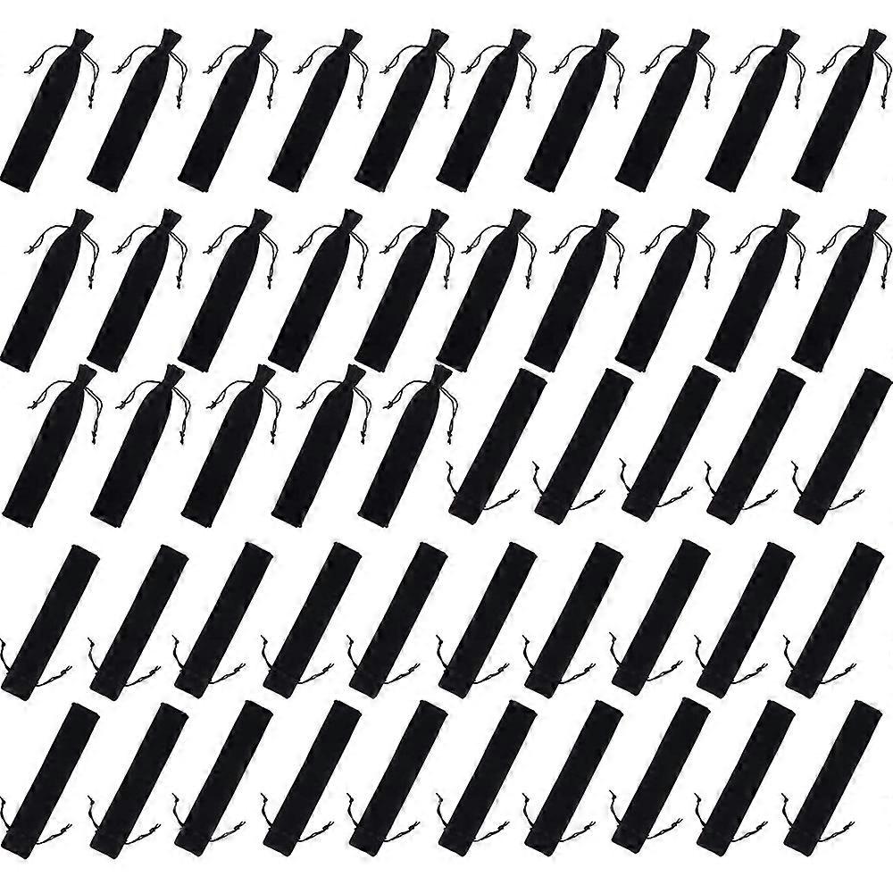 100Pcs Velvet Pen Pouch Black Drawstring Bag Single Pen Holder Packaging Sleeve for School Office B