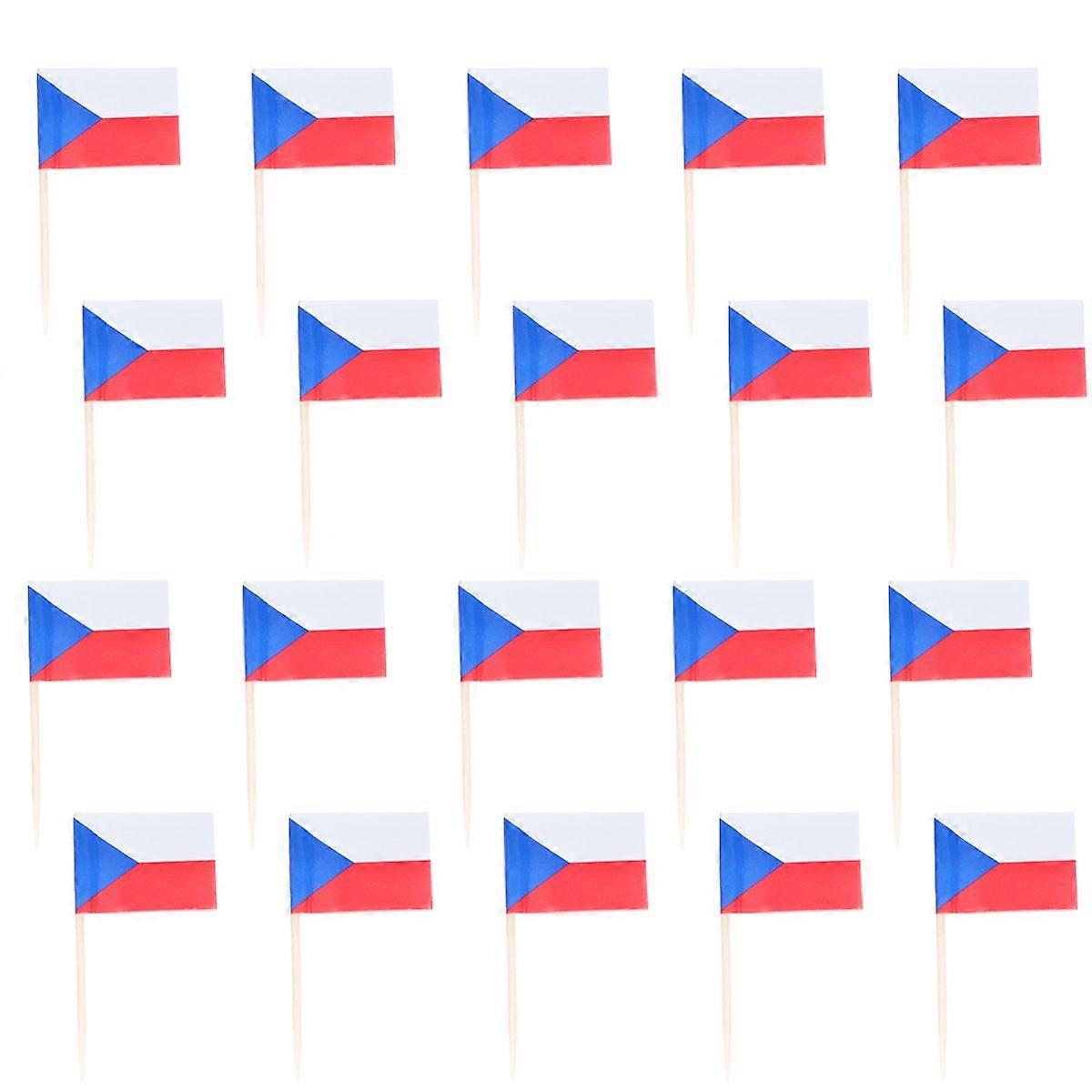 100pcs Wooden Flag Toothpicks National Day Decoration Cupcake Toppers Food Toothpick (Czech Republic)