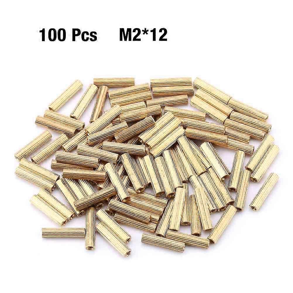 100pcs Brass Female Female Spacer Standoff Thread Pillar Studs for Computer Motherboard (M2*12)