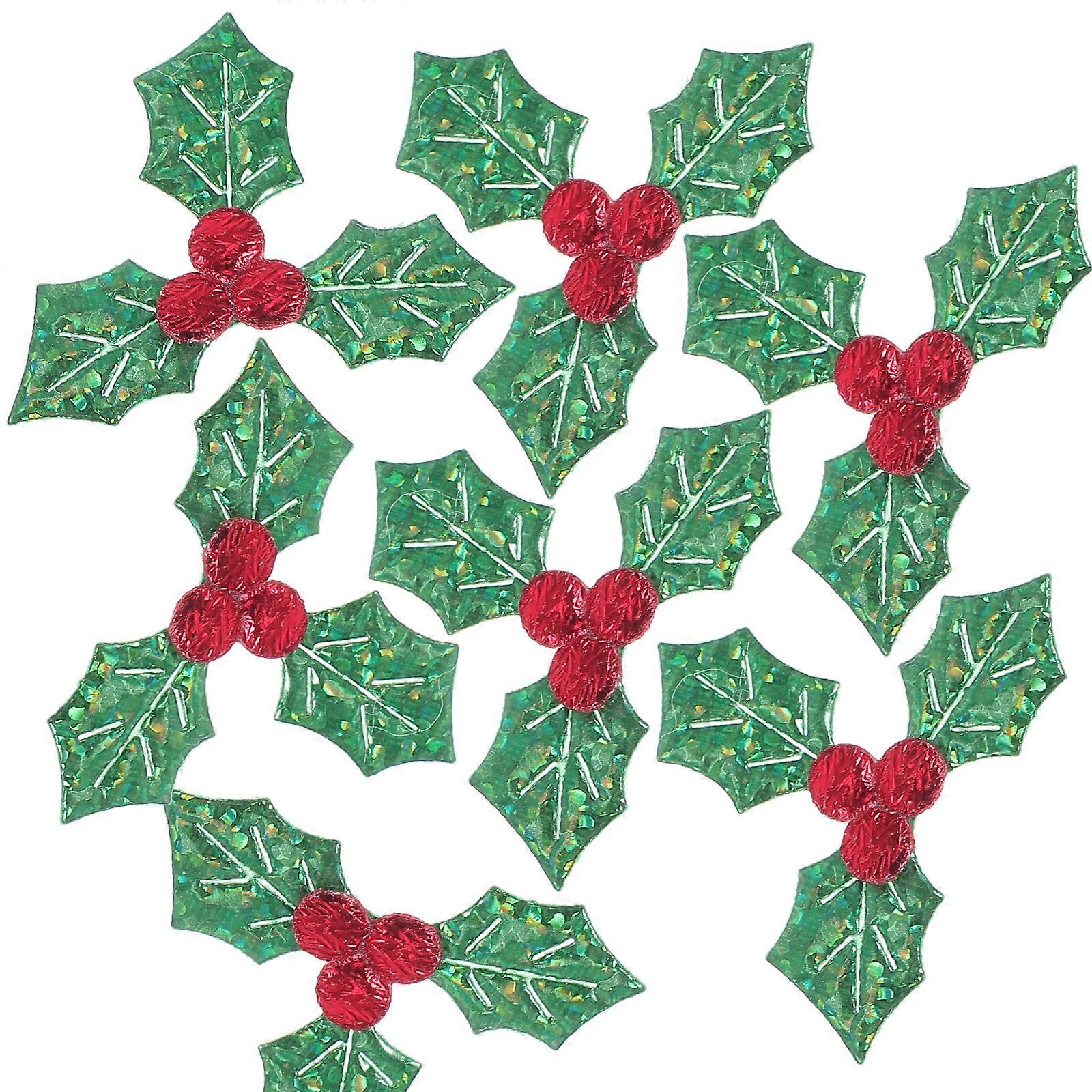 100pcs Holly Leaves Berries Patches Xmas Trees Wreath Ornaments Crafts Accessories