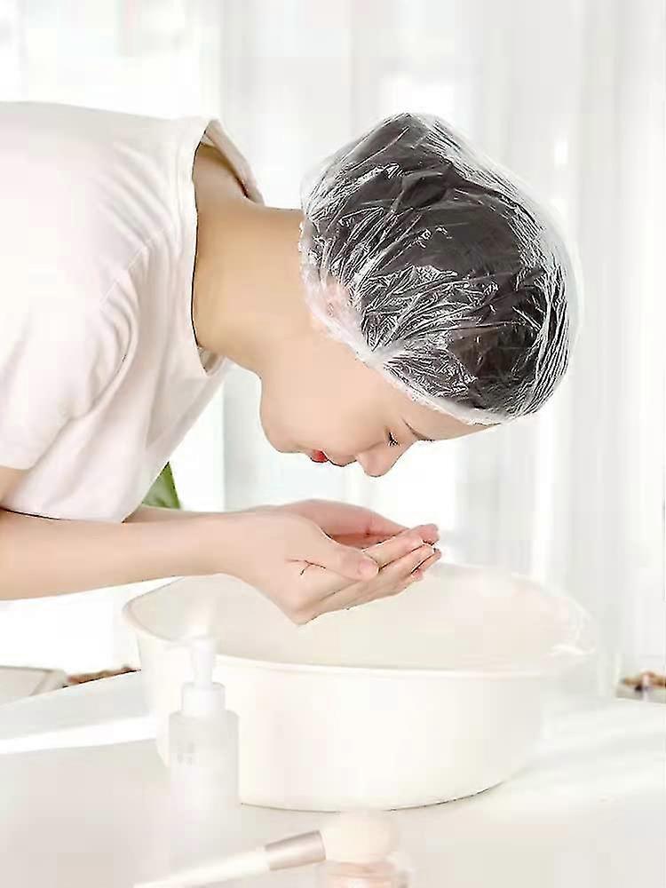 100pcs Acsergery Gift Disposable Shower Caps Plastic Elastic Bath Caps Waterproof Clear Sh