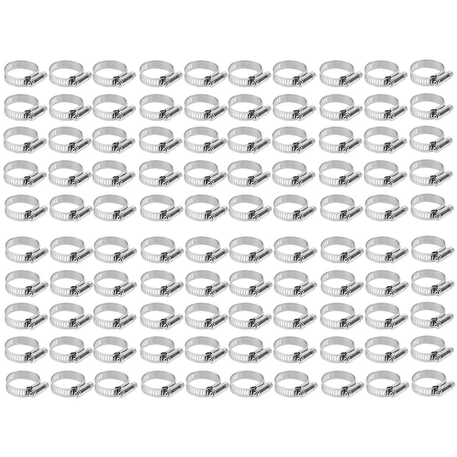 100Pcs 18-32mm Hose Clamp Stainless Steel Cross Pipe Band Clip Fastener with 10mm Width
