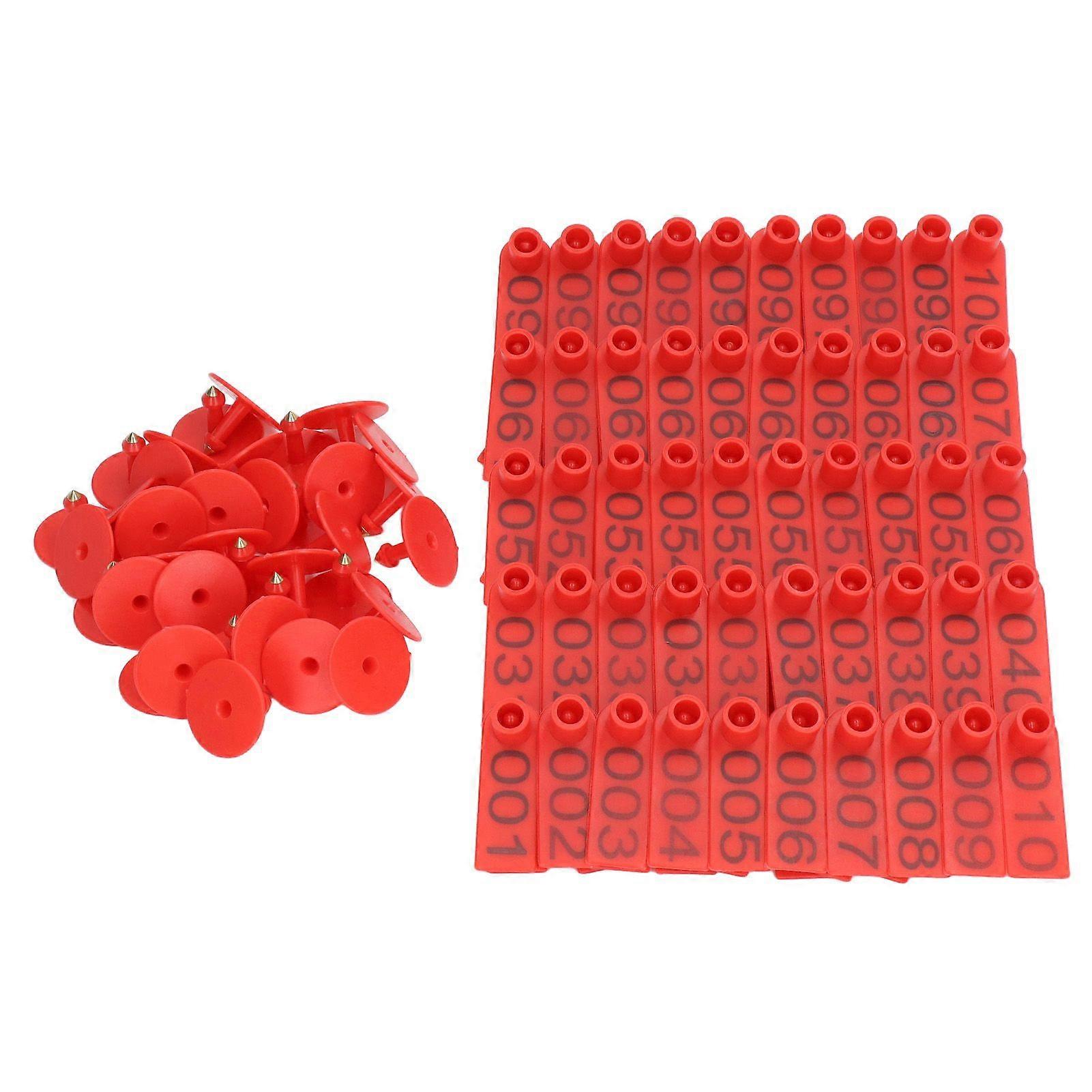 100 Sets Numbered Cattle Ear Tags Accurate Livestock Identification Card for Cow Pig Sheep RedYMJJ