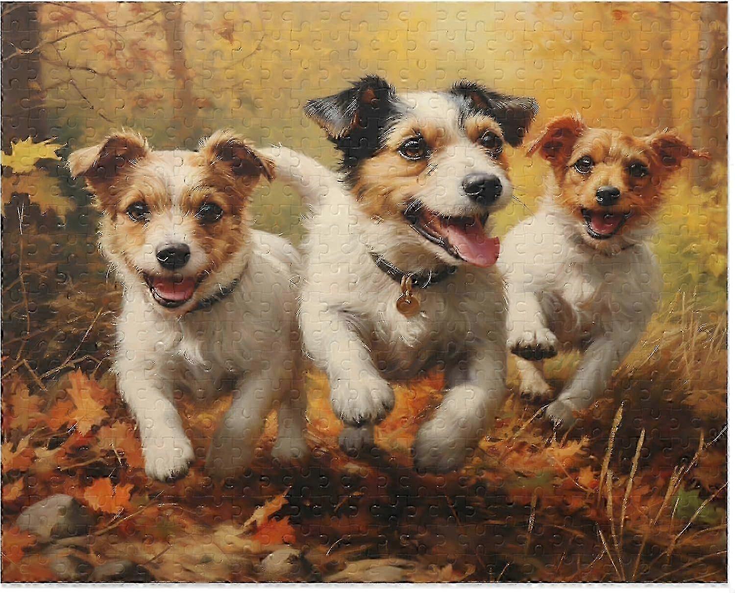 1000/500/300 Pieces Puzzles for Adults Jack Russell Terriers in Autumn Park Stress Relief Puzzle, Family Entertainment, Relaxation and Leisure, Collec