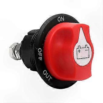 Our battery disconnect switches are constructed with brass and copper components featuring a tinned core and insulated ABS plastic housing. The tinning process enhances oxidation and discoloration resistance of the copper while maintaining optimal conductivity, improving rust protection and extending service life. Designed to withstand harsh marine environments, this switch ensures reliable performance and safety. This battery disconnect switch is engineered for safety. When a vehicle or boat is not in use, it safely cuts off power supply from the battery, preventing parasitic drain and preserving battery life without compromising system integrity. These waterproof battery isolator switches feature a compact and durable design, making them ideal for use in cars, buses, RVs, SUVs, motorcycles, trucks, pickup trucks, yachts, and other vehicles. Suitable for installation as a main battery disconnect switch across various automotive and marine applications. Rated for intermittent current up to 150 A and continuous current up to 100 A at a maximum of 32 VDC. Cranking capacity: 500 A for 5 seconds. Contact resistance: 50 mΩ. Insulation resistance: minimum 100 MΩ at 500 VDC. Mounting bolt diameter: 6 mm. The switch features clear on/off position markings for intuitive operation. "ON" indicates circuit closed (power enabled), "OFF" indicates circuit open (power disabled). The locking cap can be pulled out and rotated to prevent accidental activation, providing added security. Simply rotate the knob to achieve the desired switching state.