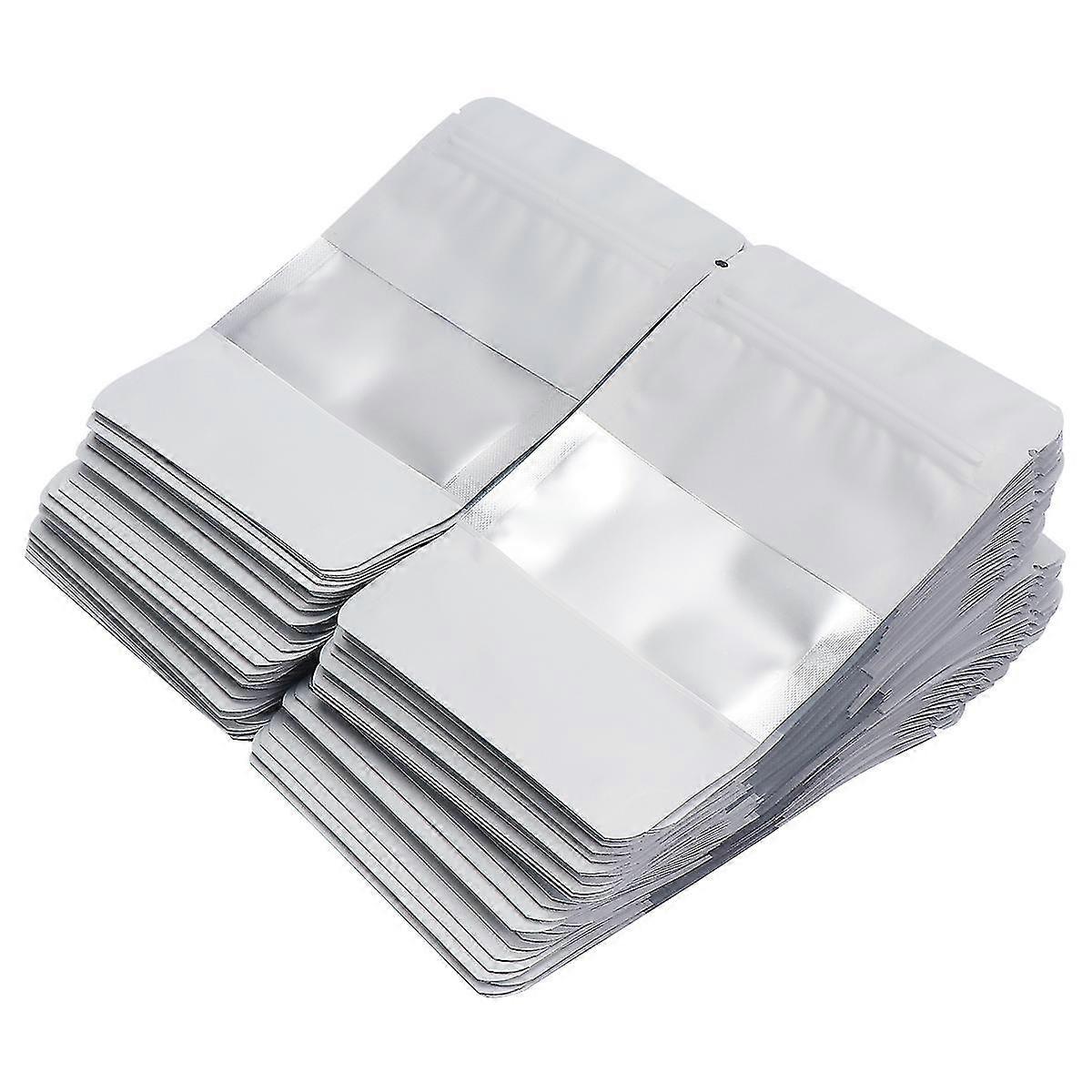 100pcs Aluminized Reclosable Zip Bags With Clear Window Standing Bulk Food Storage Pouch Packaging Bag (white, 10x15+3)