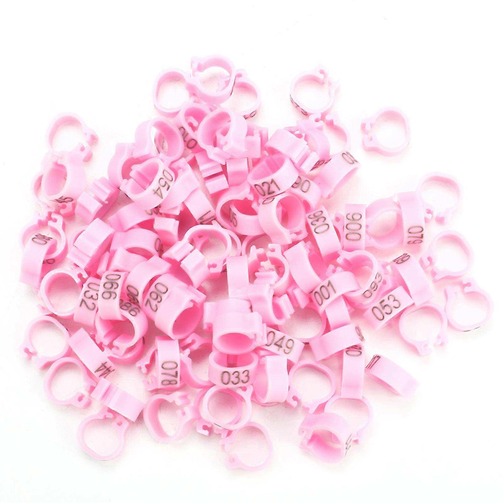 100PCS/Bag 8MM 001-100 Numbered Plastic Letter Pigeon Bird Leg Bands Rings(pink)