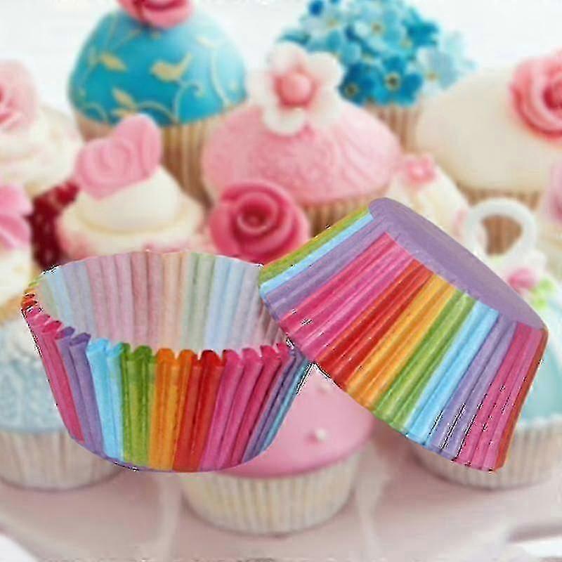100pcs Cake Paper Cup Rainbow Muffin Cases Cupcake Mold Oilproof Cupcake Liner Baking Cup Kitchen Cooking Decorating Tools