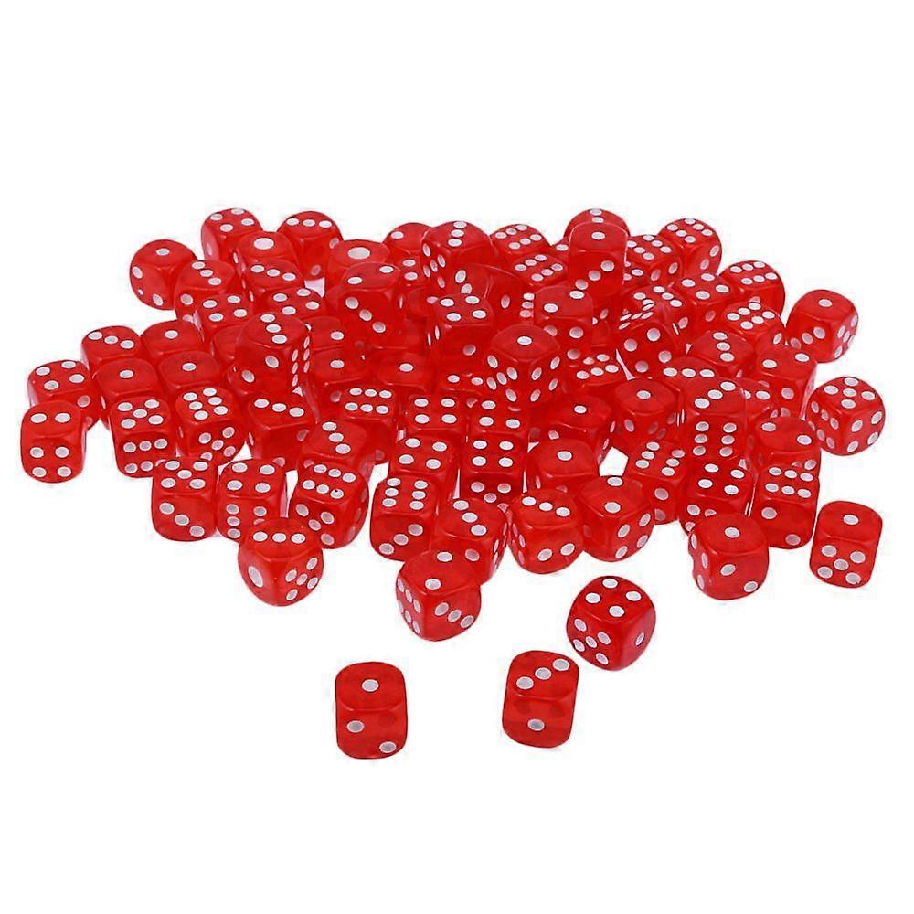 100pcs Transparent Six Sided D6 Dice For D&D Games TRPG Party Toys Red