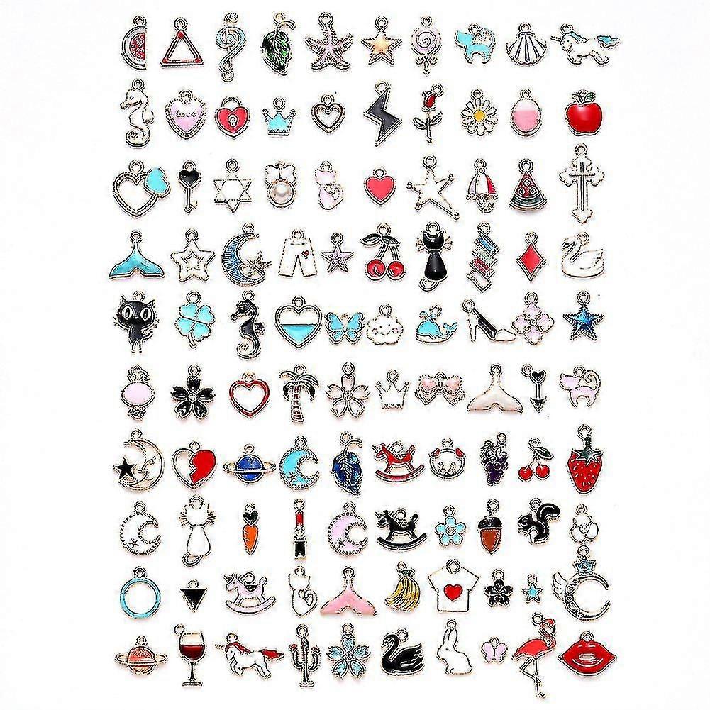 100pcs Mixed Assorted Gold Plated Enamel Animals Fruit Moon Star Dainty Dangle Charm Pendant For Diy Jewelry Making Necklace Bracelet Earring Diy