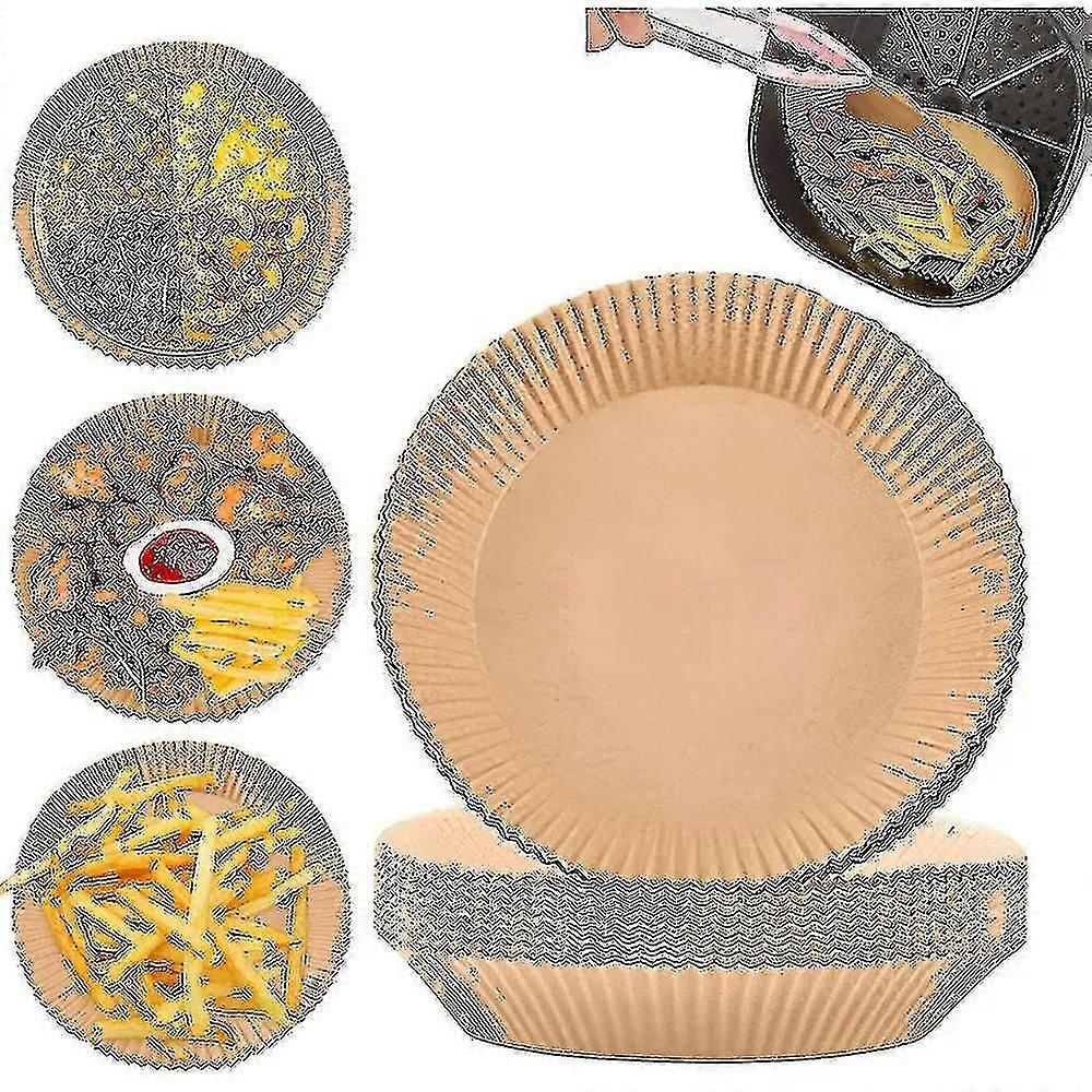 104Pcs Air Fryer Parchment Paper Liners Non-Stick Disposable Paper Tray Barbecue Plate Food Oven Kitchen Round Baking Paper Package included: 104 Pcs Air Fryer Parchment Paper Size: Diameter:16cm Feature: Keep Fryer Clean-Disposable air fryer liners keep the fryer as clean as it was before use, preventing food scraps and greasy stains from being left on the cookware. Extend fryer life and reduce cleaning time. The best air fryer accessories. Don't worry about spending a lot of energy and time on cleaning after enjoying the food. Easy to Use-The Upgraded version Baking Paper has a round bowl shape with a 4.5cm/1.77inch raised edge of the greaseproof paper to protect the sides of the fryer and prevent food from sticking to it. The design of the raised edge allows the silicone oil paper to be easily removed from the pan after baking. No need to tear, fold, cut, bend, easy to operate, and can be directly put in when cooking. Material Safety-High Quality Food Grade parchment paper, unperforated paper, with nice heat resistant, can withstand temperatures up to 428 degrees Fahrenheit, which is oil-proof, water-proof, non-sticky. No greasy mess, keep the integrity and beauty of food, and it has no effect on the taste of food. The material of disposable paper liners is degradable and environmentally friendly. Widely Use-Our air fryer paper can be used for baking, roasting, frying or holding food, suitable for air fryer, microwave oven, cake pan, cookware, steamer and oven, etc. Home baking, camping, barbecue, party can not be without it. Inner Diameter: 16cm/ 6.3inches