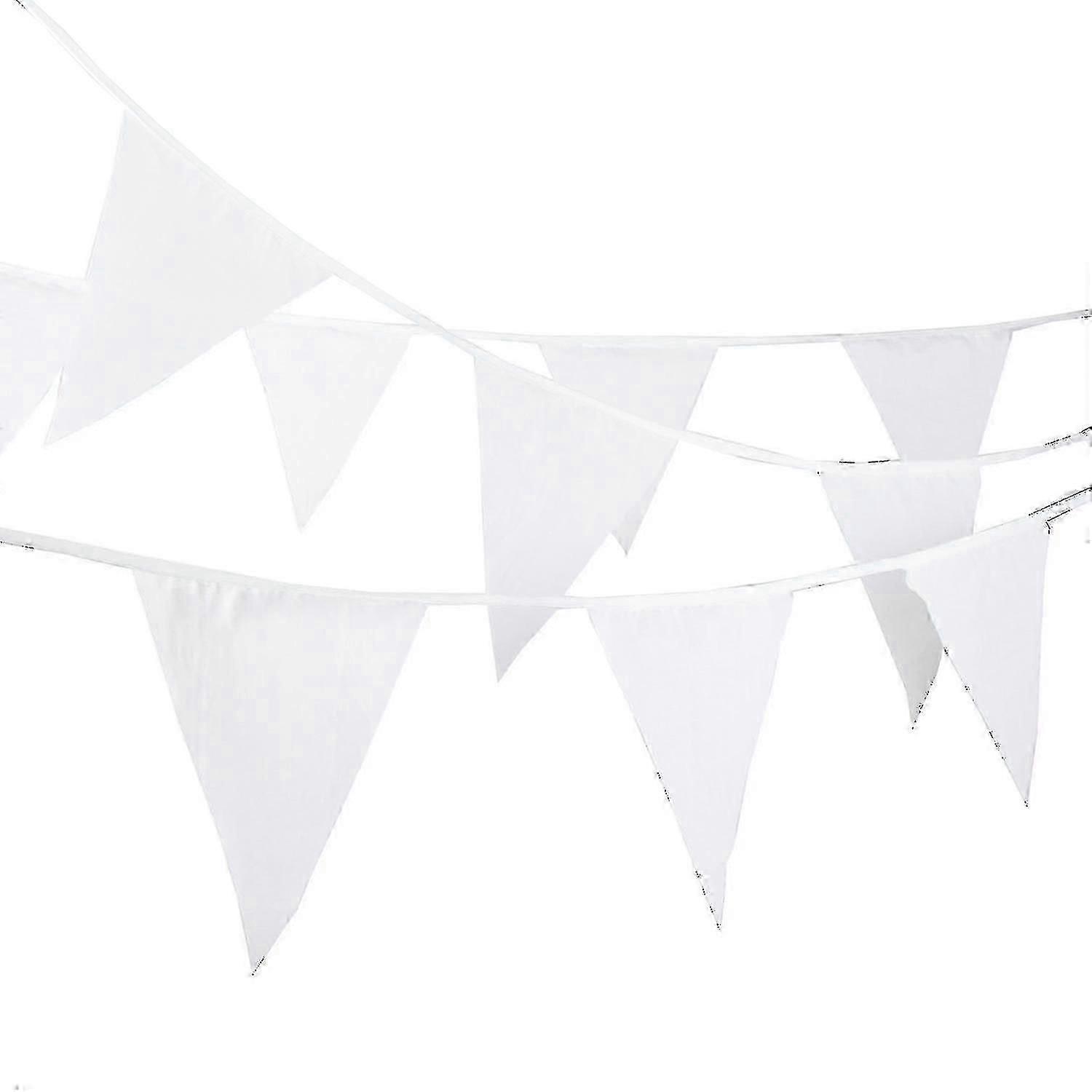 Cotton Bunting Garland 10m White Fabric Flags for Wedding Nursery Decor
