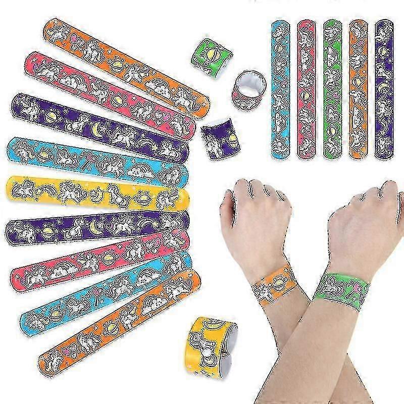 10pcs Cartoon Unicorn Clap Circle Girl 1st Unicorn Theme Birthday Party Decoration Kids Toy Gift Mermaid Dinosaur Slap Bracelets