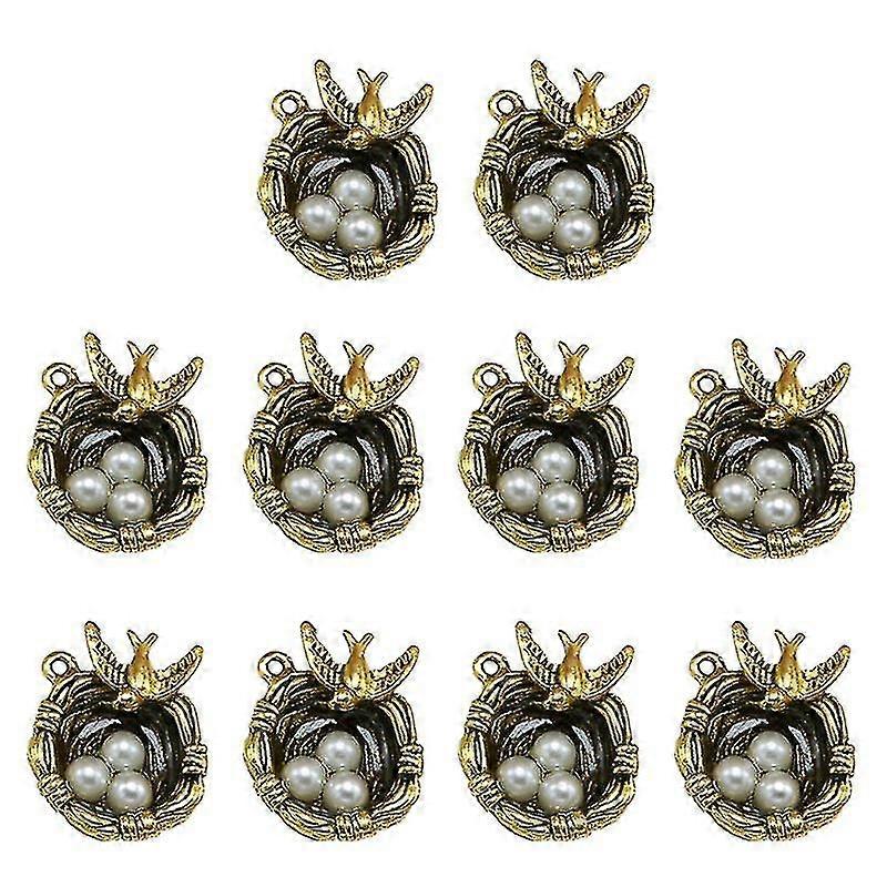 10pcs Alloy Bird's Nest Pendant Charms Diy Jewelry Making Accessories For Necklace Bracelet (golden)