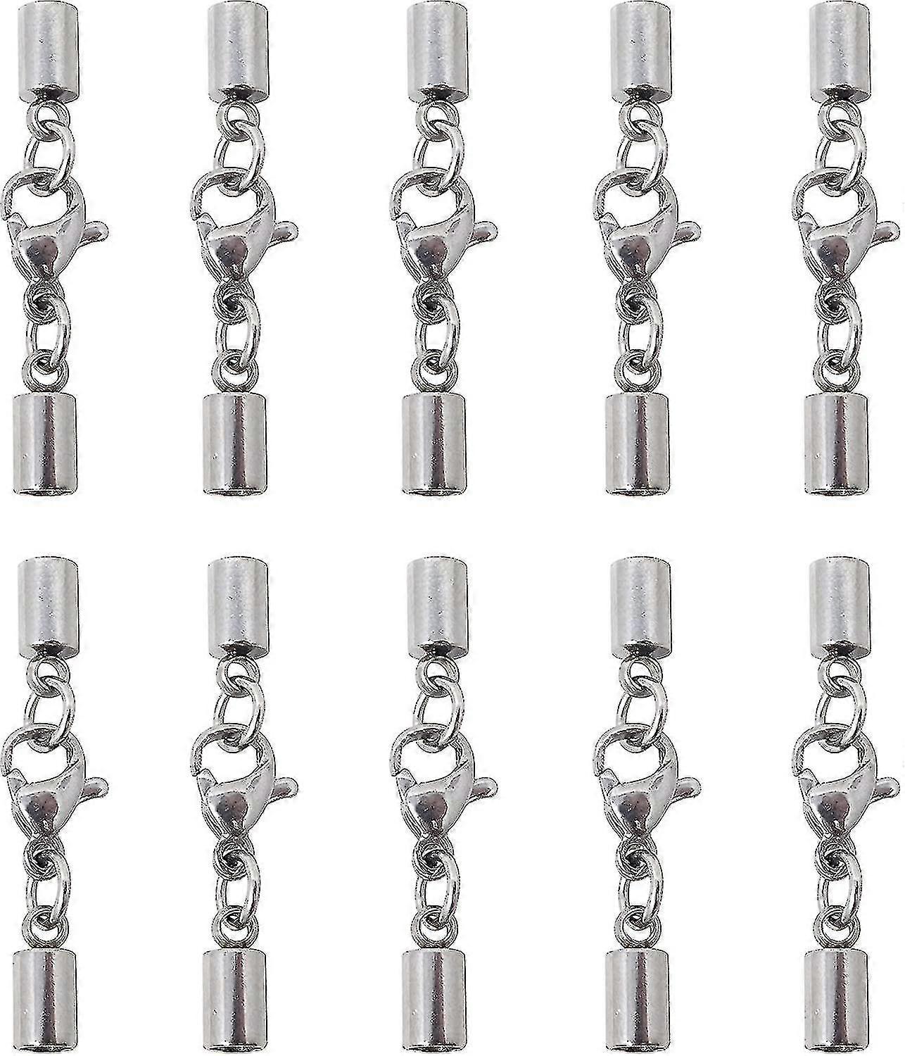 10pcs 3mm Stainless Steel Leather Cord End Caps With Lobster Clasp Connector For Jewelry Making